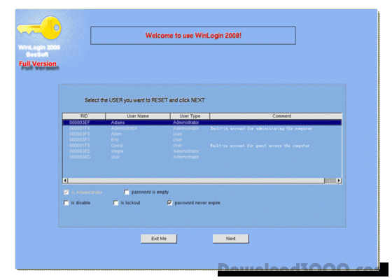 If you have forgotten your password, or are locked out, or you do not have access to the password of the system, WinLogin is the right tool for you. WinLogin 2008 is an easy-to-use tool to reset local administrator and user passwords on Windows system. It resets Windows passwords and Windows security settings instantly. Full Version has more function to manage windows user without booting into windows. All version of Windows are completely supported. It's an incredible CD for Home users and Businesses. And most of all, it's the most popular and safe solution for cracking your Windows password up to now. And we have already had approximately 2,230,000 satisfied customers.